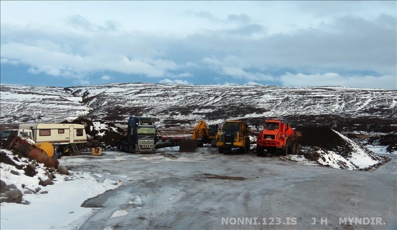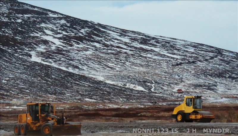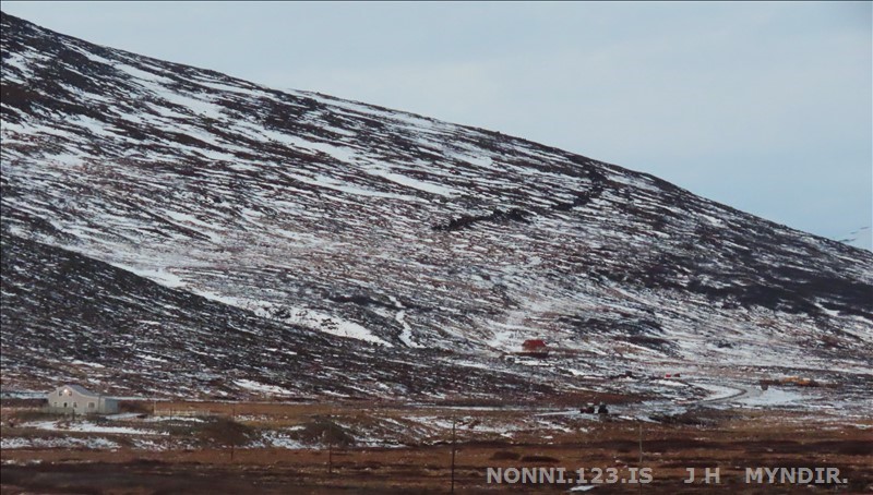 Selárdalur 22.12 2025. Nú er verið að gera veg fyrir framan Þjóðbrókargil og upp á fjall.