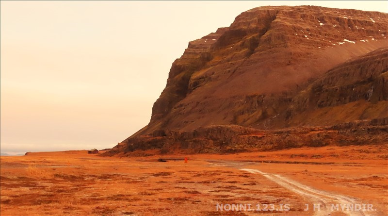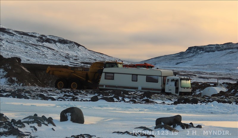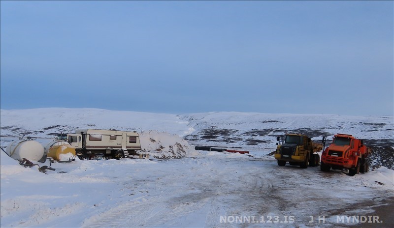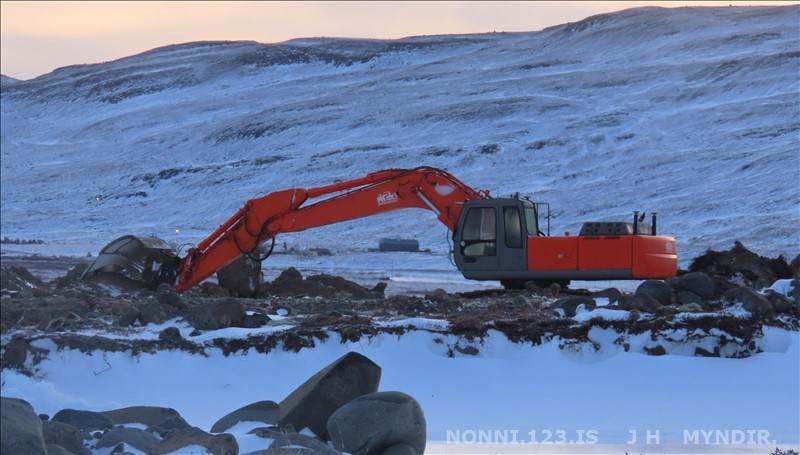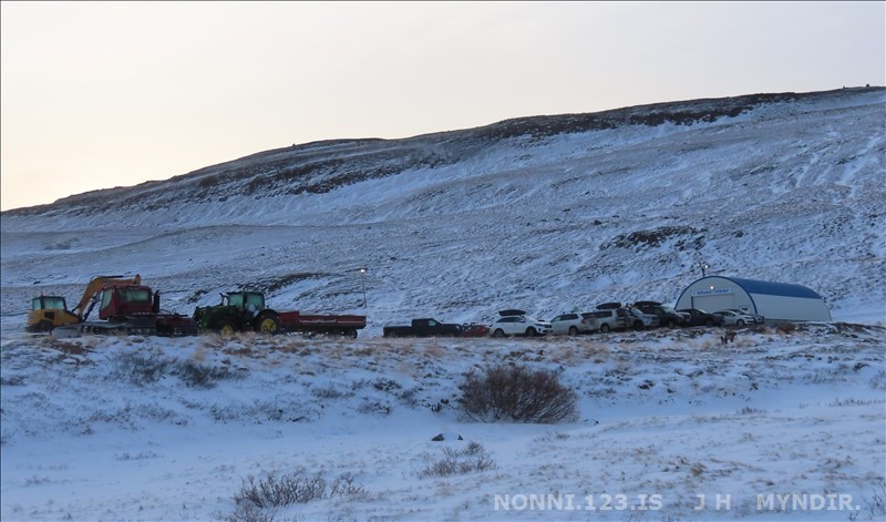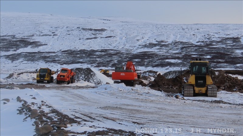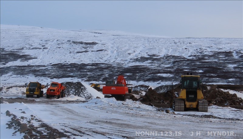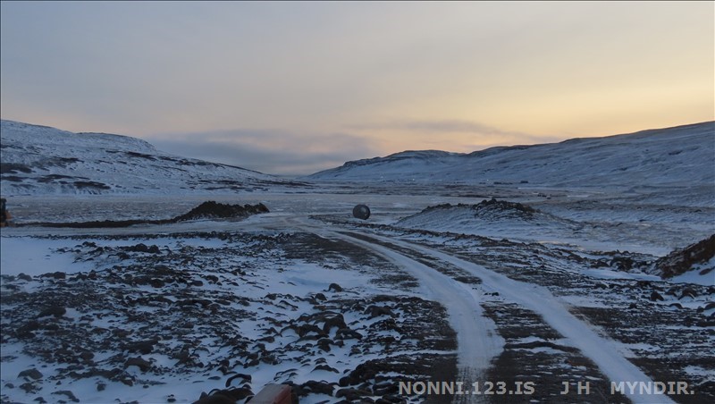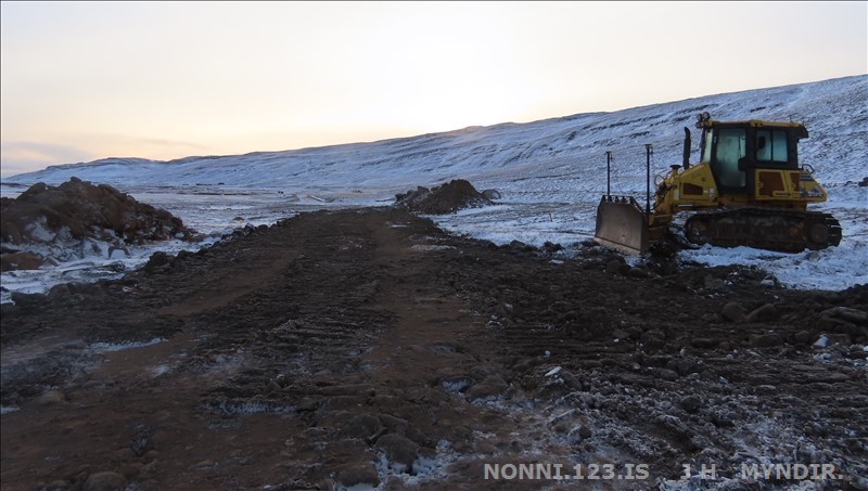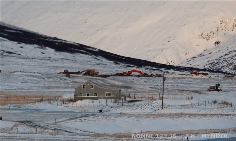 Selárdalur 22.12 2025. Nú er verið að gera veg fyrir framan Þjóðbrókargil og upp á fjall.